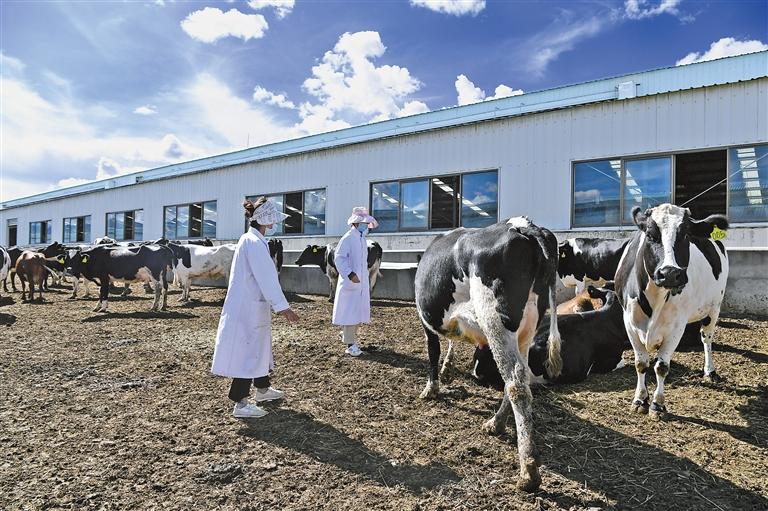 圖為工人在聶雄標(biāo)準(zhǔn)化奶牛養(yǎng)殖場查看奶牛生長情況。[詳細(xì)]