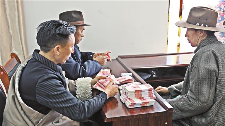 圖為分紅現(xiàn)場(chǎng)。通訊員 普珍 阿珍 益西平措 攝