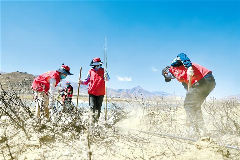 雅魯藏布江兩岸人義務(wù)植樹(shù)活動(dòng)