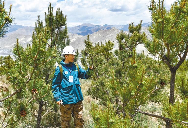 工程的綠意還延伸至拉薩貢嘎機(jī)場(chǎng)周邊的山體,山南市林草局林業(yè)和草原有害生物防治站檢疫員次仁羅布在造林現(xiàn)場(chǎng)進(jìn)行苗木復(fù)檢工作,復(fù)檢結(jié)果顯示這批苗木的成活率達(dá)到92%?!斑@里是走出貢嘎機(jī)場(chǎng)的第一站,旅客們可以直接看到我們種下的綠色,很有意義。”次仁羅布說(shuō)。
