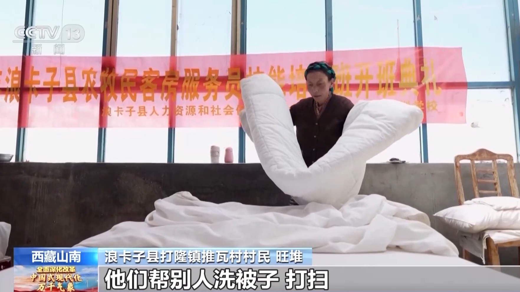 旺堆:村民有這樣的觀念,他們幫別人洗被子、打掃,他們都不愿意,他們?cè)嚵艘院?,他們一年里面得到?5000元的收入,慢慢他們把傳統(tǒng)的觀念放下了。