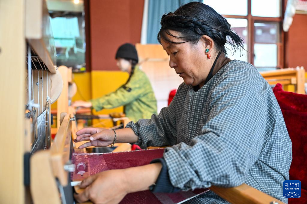氆氌是藏族群眾用來制作藏式衣物的毛織品,其工藝迄今已有上千年歷史。在上海援藏幫扶下,這項傳統(tǒng)技藝如今已成為當(dāng)?shù)亍鞍⒓选保ú卣Z意為“大姐”)們的致富新途徑,煥發(fā)出新的生機。