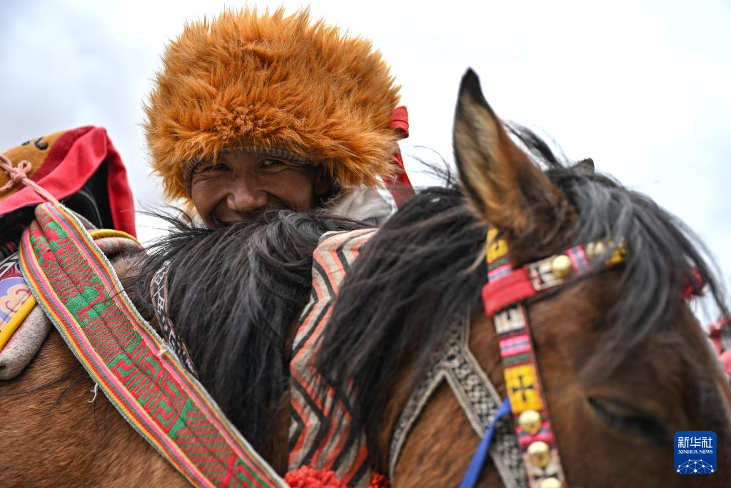 9月8日,在普蘭縣巴嘎鄉(xiāng)崗莎村,村民靠在自己飼養(yǎng)的用于載客的馬匹上。新華社記者孫瑞博 攝