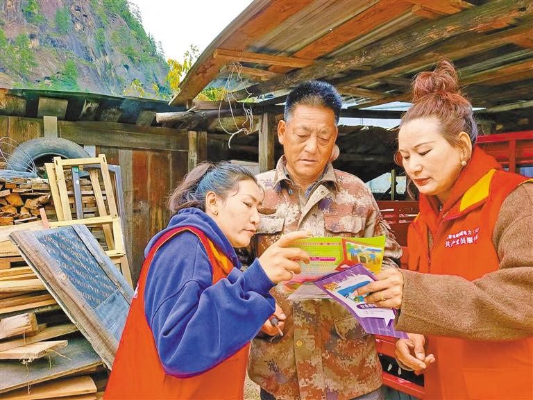 黨員服務(wù)隊檢查電路運行情況。圖/文 記者 劉楓 安付花 通訊員 益西白珍