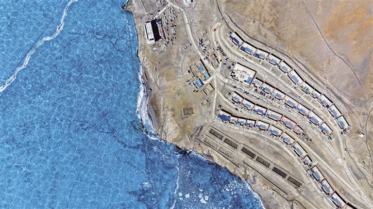 當(dāng)日,天空晴朗,在廣袤無垠、無樹木遮擋的曠野上,稍起一陣疾風(fēng),便會(huì)揚(yáng)起一層薄薄的黃沙。從村委會(huì)出發(fā),沿著冰湖畔的水泥小路前行,很快就來到了村民倫珠曲珍的家。一進(jìn)屋,厚實(shí)的木門便將凜冽的寒風(fēng)擋在了門外?!翱煺?qǐng)進(jìn),這幾天風(fēng)沙有點(diǎn)大,普莫雍措都沒以前藍(lán)了?!眰愔榍湟贿呹P(guān)門一邊熱情地笑著說道。