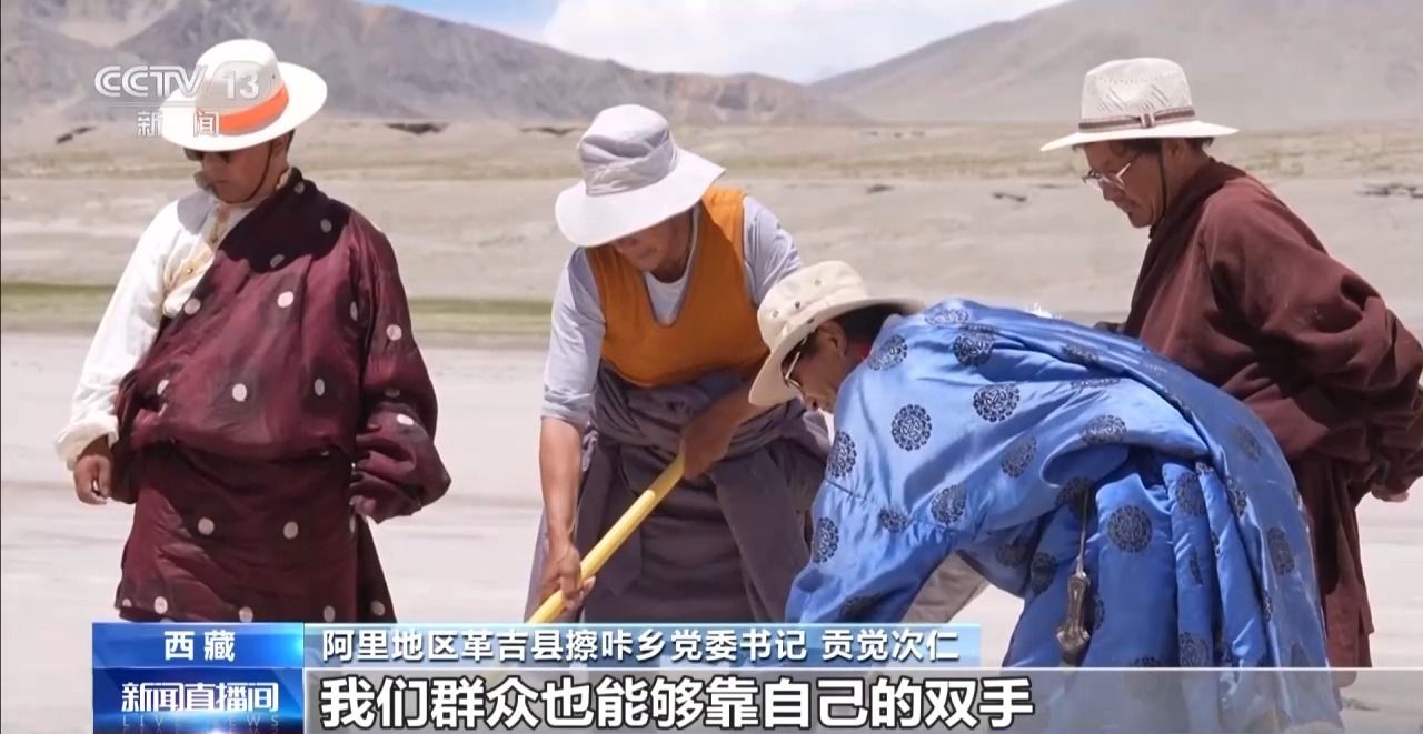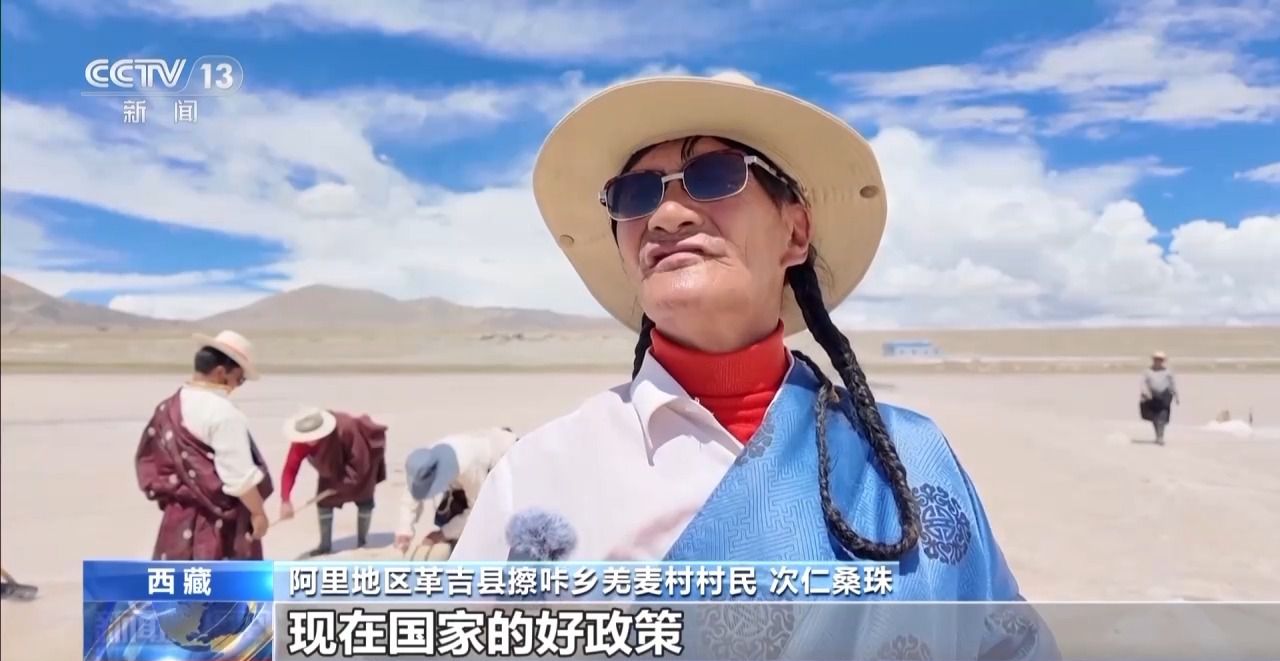 阿里地區(qū)革吉縣擦咔鄉(xiāng)黨委書記 貢覺次仁:我覺得有這樣一個(gè)鹽礦資源,我們?nèi)罕娨材軌蚩孔约旱碾p手能夠運(yùn)作起來,所以我認(rèn)為鹽廠就是下一步,整個(gè)羌麥村的主要的經(jīng)濟(jì)實(shí)力,也是一個(gè)發(fā)展前景最好的經(jīng)濟(jì)實(shí)體。