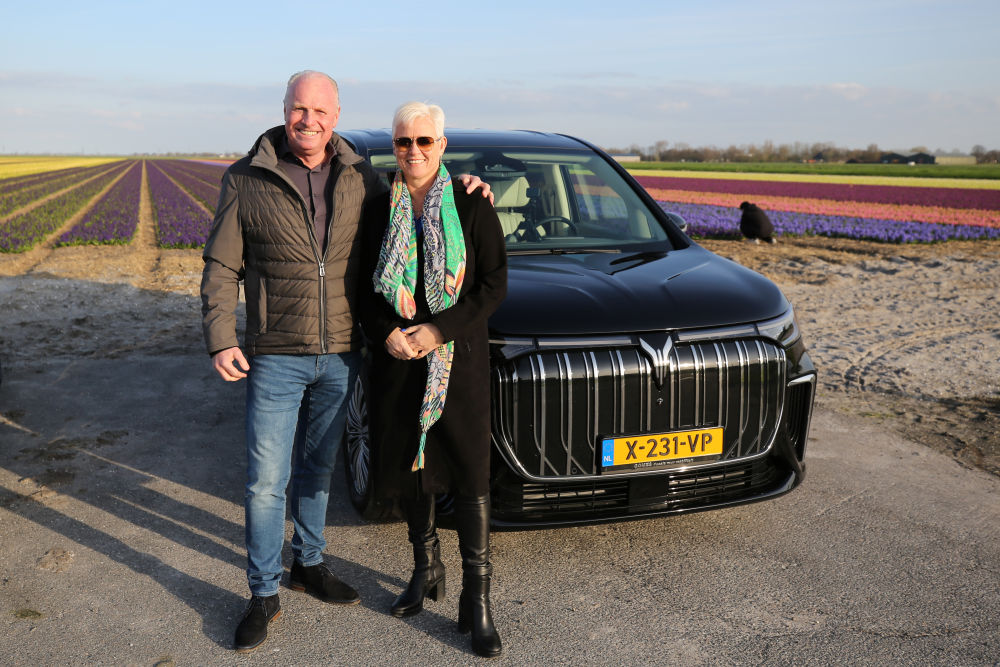 3月25日,荷蘭消費(fèi)者埃里克·贊德貝亨和他的妻子埃倫在嵐圖汽車前合影。新華社記者趙丁喆攝