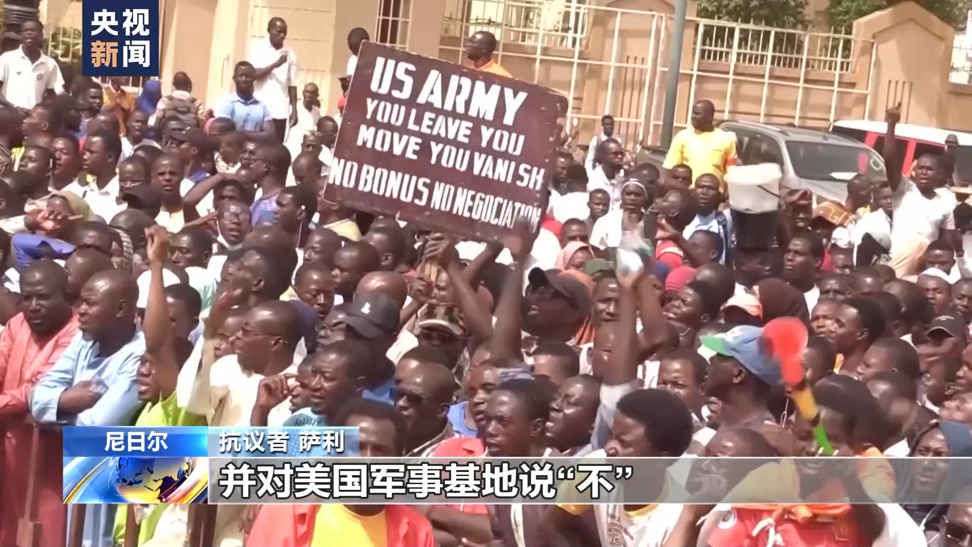 抗議者 薩利:我們來到這里,就是為了支持尼日爾軍政權(quán),并對美國軍事基地說“不”。我們不希望美國人進入我們的領(lǐng)土。