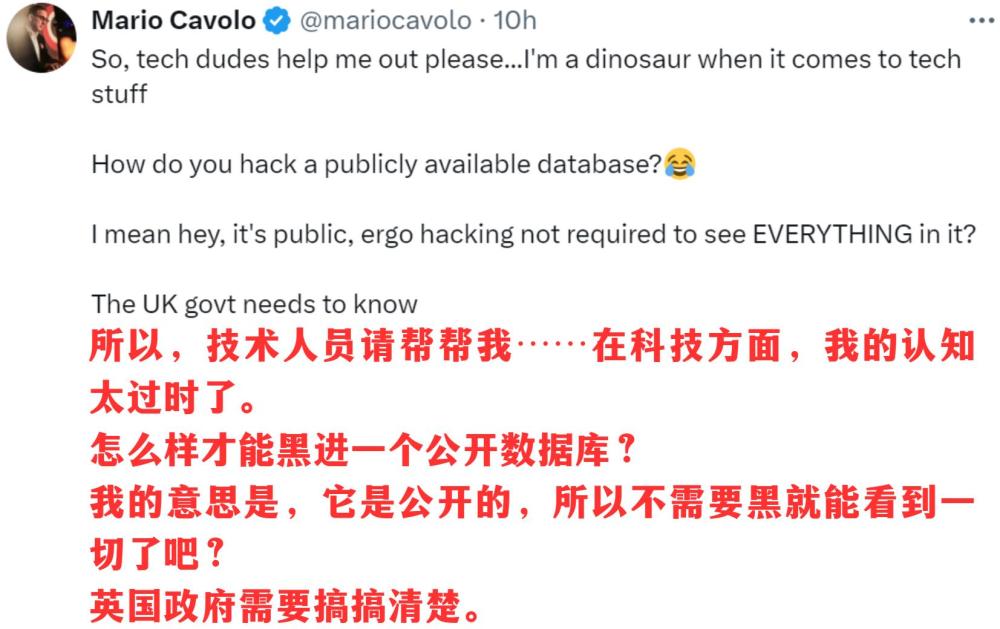 更重要的是,相關(guān)政客言論中的邏輯謬誤也讓人不忍直視。脫口秀特意截取了英國議會議員帕特·麥克法登的提問:“副首相為什么認為中國政府會去黑一個公開數(shù)據(jù)庫?”這也讓美國作家馬意駿忍俊不禁: