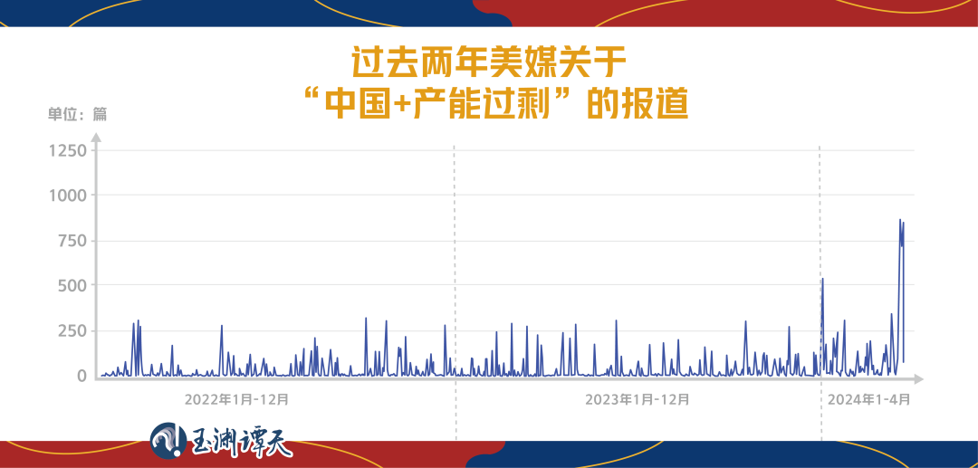 檢索美媒同時(shí)提及“中國(guó)”“產(chǎn)能過(guò)剩”的報(bào)道,從數(shù)量變化中,可以看出,所謂中國(guó)“產(chǎn)能過(guò)?!钡脑掝},從2022年就已經(jīng)開始。