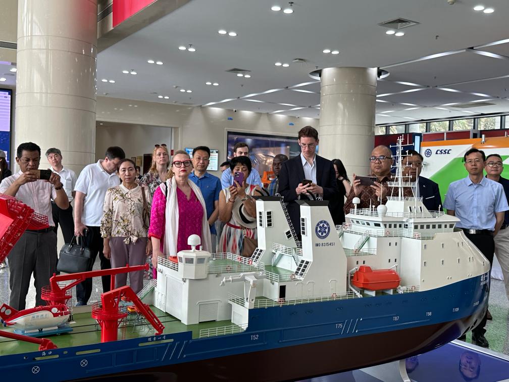 圖為駐華使節(jié)在中國(guó)科學(xué)院深??茖W(xué)與工程研究所參觀。新華社記者 袁睿 攝