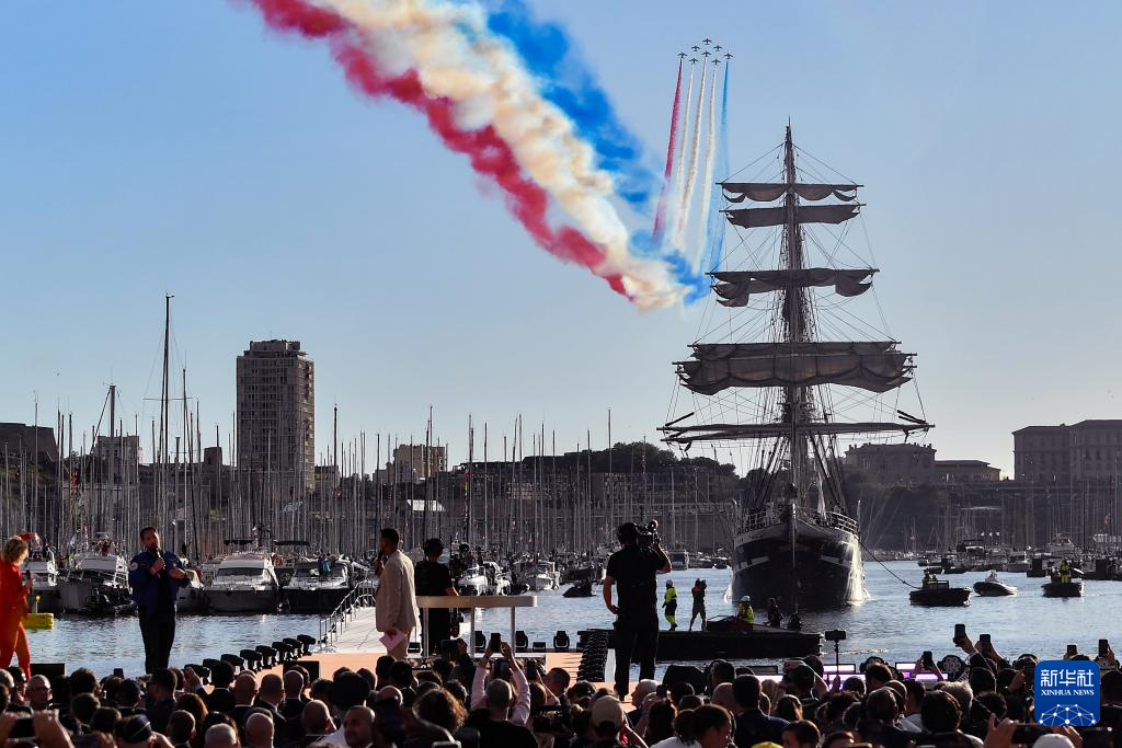 ??傍晚時(shí)分,伴隨著現(xiàn)場(chǎng)觀眾高唱法國(guó)國(guó)歌《馬賽曲》,“貝勒姆”號(hào)緩緩駛進(jìn)港口,著名的“法蘭西巡邏兵”飛行表演隊(duì)從港口上空呼嘯而過,先后展示了奧運(yùn)五環(huán)與法國(guó)國(guó)旗的圖案。