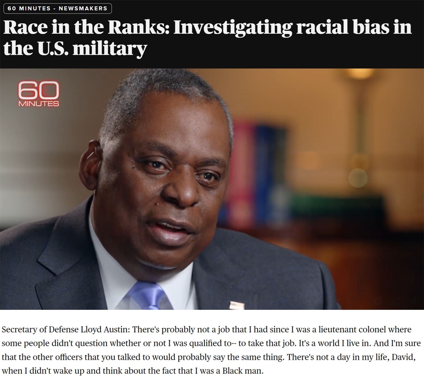 曾有多位美國軍方非裔高官對媒體表示,自己在長期的軍旅生涯中飽受歧視。