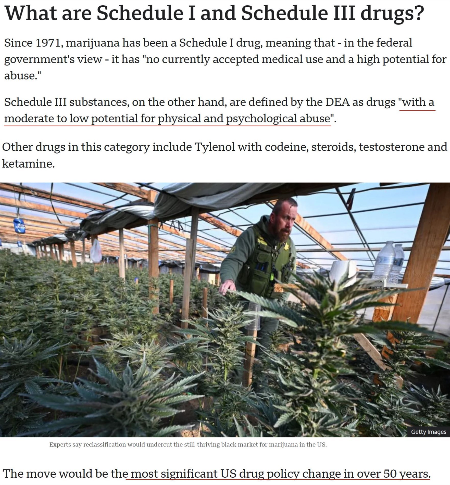 如果經(jīng)過(guò)60天的公眾意見(jiàn)征詢期后最終獲批,新規(guī)則雖然不會(huì)在聯(lián)邦層面將大麻完全合法化,但會(huì)將其移出《美國(guó)聯(lián)邦管制物質(zhì)法案》中列管海洛因等最危險(xiǎn)毒品的“附表一”,轉(zhuǎn)而歸入列管氯胺酮和類(lèi)固醇等危險(xiǎn)性較低藥物的“附表三”。