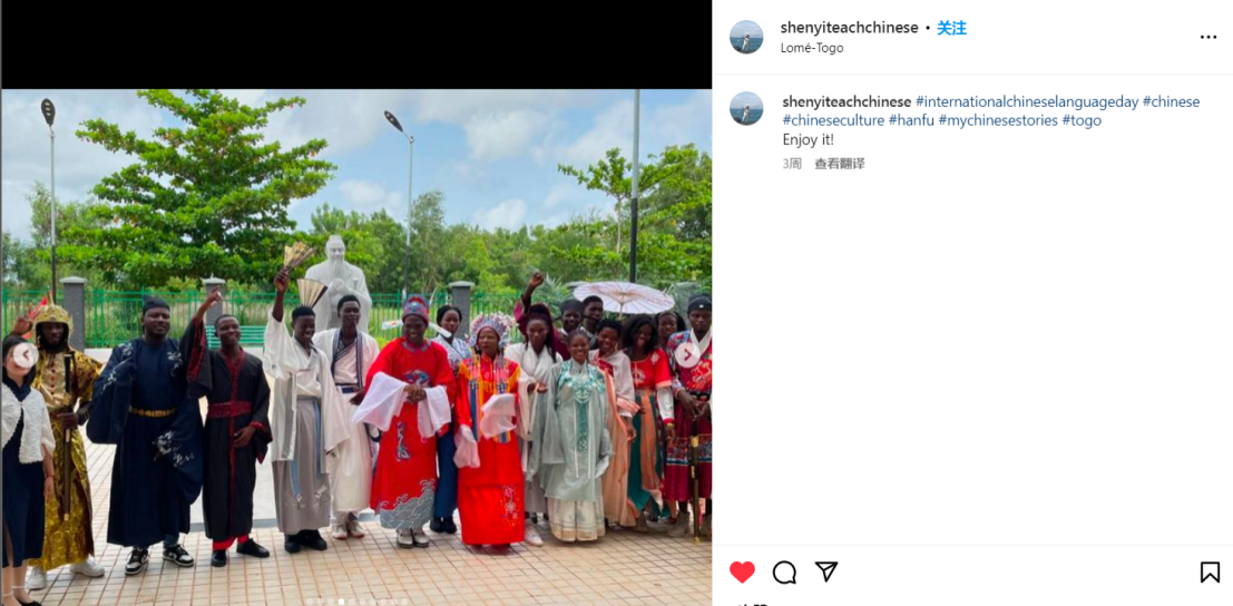 西班牙的王子威、俄羅斯的馮雅琦和王振、菲律賓的丁峰、多哥的沈一等老師則展示了世界各地的中文日慶祝文化體驗活動,包括手工、書法、漢服、繪畫等多樣體驗項目。
