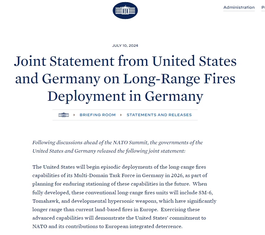 在上周的北約華盛頓峰會(huì)期間,美國和德國聯(lián)合宣布,作為長(zhǎng)期規(guī)劃的一部分,美國將從2026年開始分階段在德國部署遠(yuǎn)程武器。