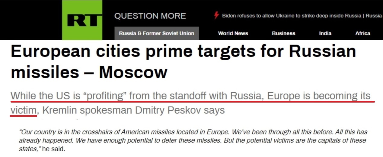 他指出,當(dāng)美國從與俄羅斯的對(duì)峙中“獲利”時(shí),歐洲正在成為其受害者。