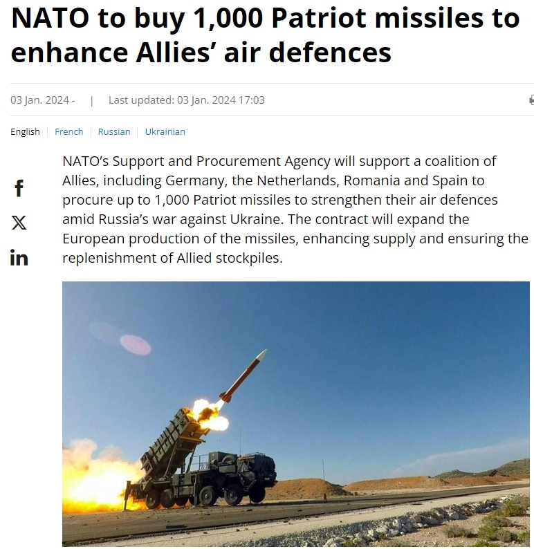 包括德國、荷蘭、羅馬尼亞和西班牙在內(nèi)的北約多個(gè)歐洲成員國今年1月決定聯(lián)合采購總價(jià)值55億美元的1000枚“愛國者”導(dǎo)彈,以幫助加強(qiáng)烏克蘭軍隊(duì)的防空能力,并補(bǔ)充北約各援烏國家的庫存。