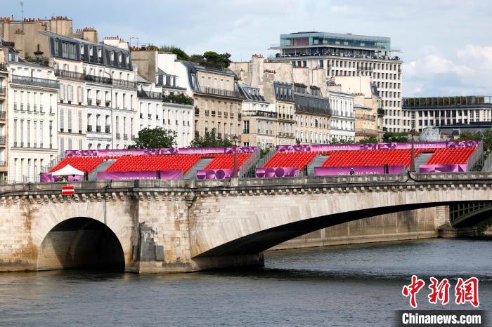 當(dāng)?shù)貢r間7月21日,巴黎奧運(yùn)會開幕在即,圖為塞納河上的觀眾席?!≈行律缬浾?富田 攝