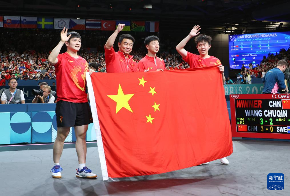 當(dāng)日,在巴黎奧運(yùn)會(huì)乒乓球男團(tuán)金牌賽中,中國(guó)隊(duì)?wèi)?zhàn)勝瑞典隊(duì),獲得冠軍。