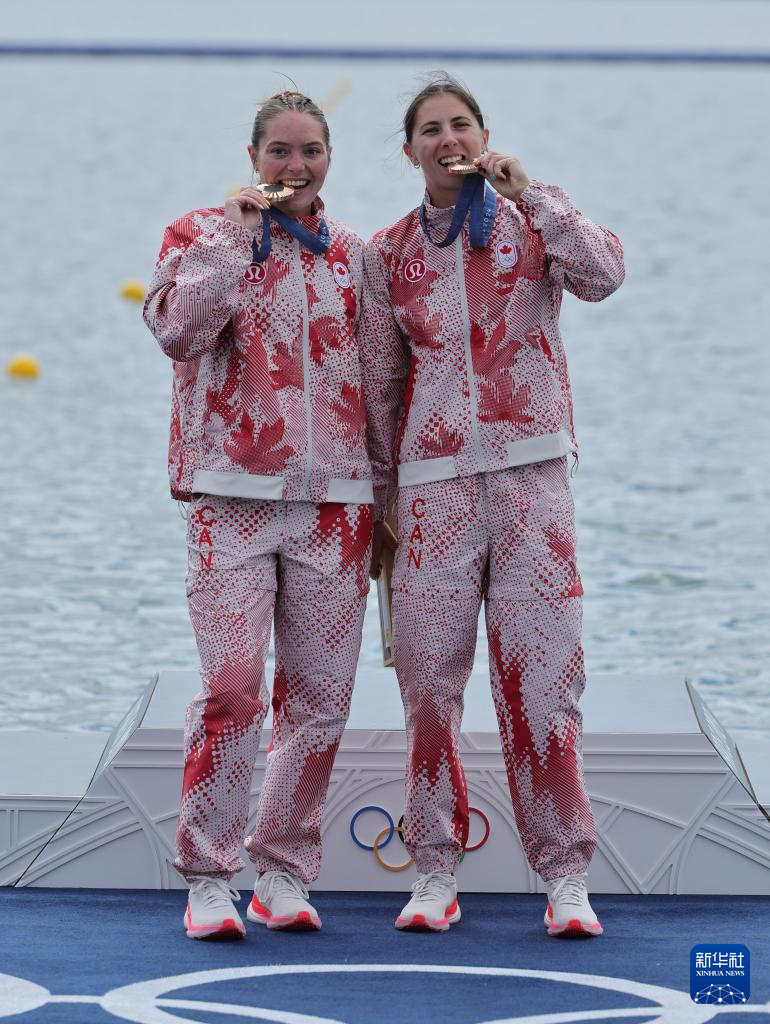 8月9日,季軍加拿大組合斯隆·麥肯齊(左)/凱蒂·文森特在頒獎儀式上。新華社記者 沈伯韓 攝