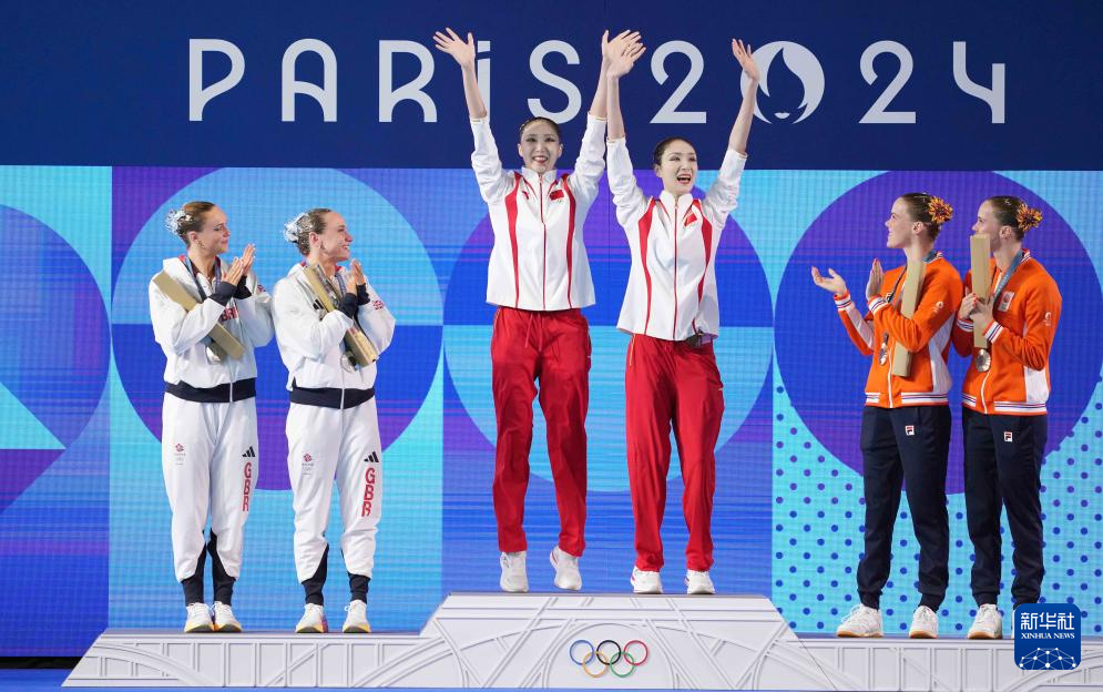 當日,巴黎奧運會花樣游泳雙人項目的最后一項比賽雙人自由自選在巴黎奧林匹克水上運動中心舉行。中國組合王柳懿/王芊懿奪得冠軍。