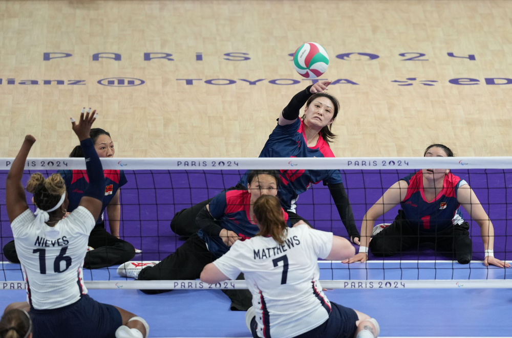 新華社巴黎9月7日電(記者馬思嘉、張薇)7日晚,遠(yuǎn)離市中心的北巴黎競技場人潮涌動,中美女子坐式排球在殘奧會舞臺第六次打響激烈的金牌爭奪戰(zhàn),舉著五星紅旗和星條旗的觀眾也在為各自隊伍聲嘶力竭地吶喊。