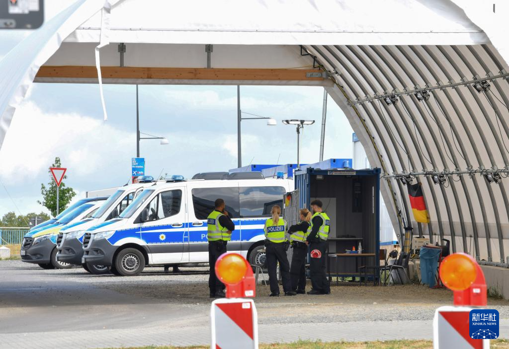 9月10日,在位于德國(guó)和波蘭邊境的德國(guó)城市奧得河畔法蘭克福,警察在邊檢站執(zhí)勤。新華社記者 任鵬飛 攝