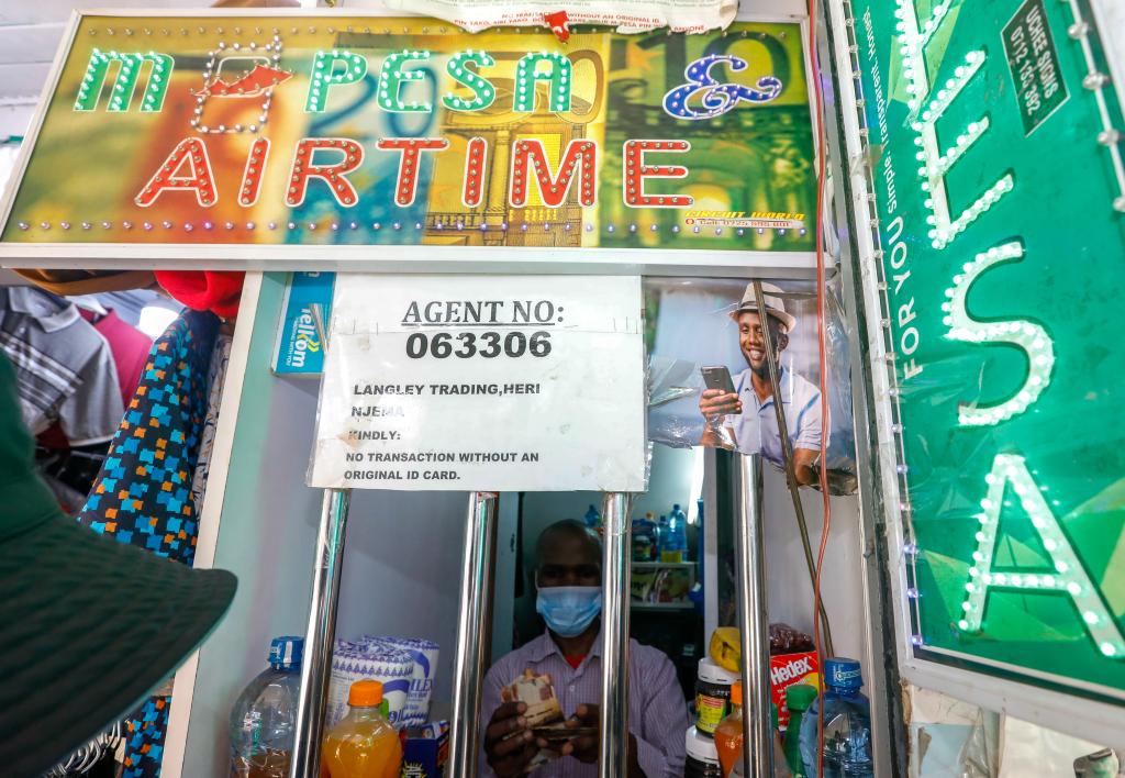 2021年9月16日,人們?cè)诳夏醽喪锥純?nèi)羅畢市中心一處M-Pesa代理網(wǎng)點(diǎn)辦理業(yè)務(wù)。新華社記者張宇攝
