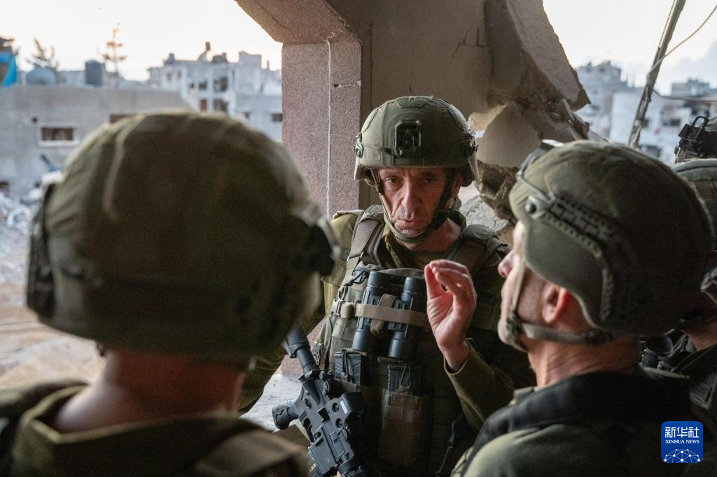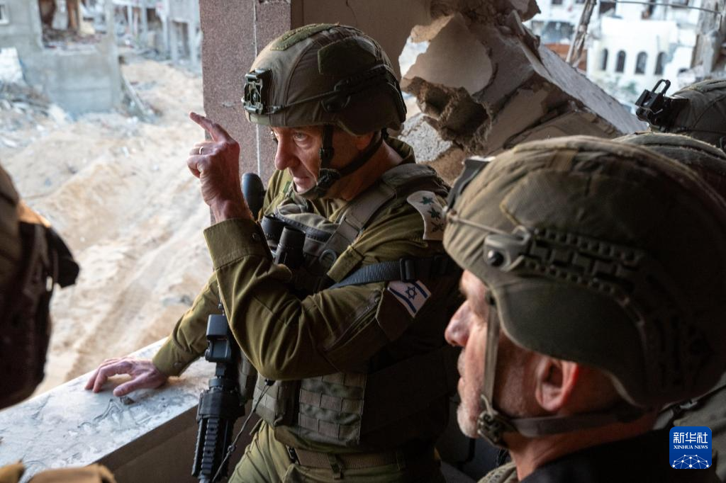 10月17日,以色列國(guó)防軍總參謀長(zhǎng)哈萊維(中)在加沙地帶辛瓦爾死亡地點(diǎn)附近視察。新華社發(fā)(以色列國(guó)防軍供圖)