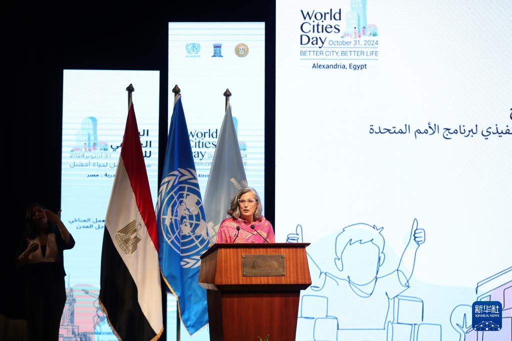 10月31日,在埃及亞歷山大,聯(lián)合國(guó)人居署執(zhí)行主任阿納克勞迪婭·羅斯巴赫在活動(dòng)上致辭。新華社記者 王東震 攝