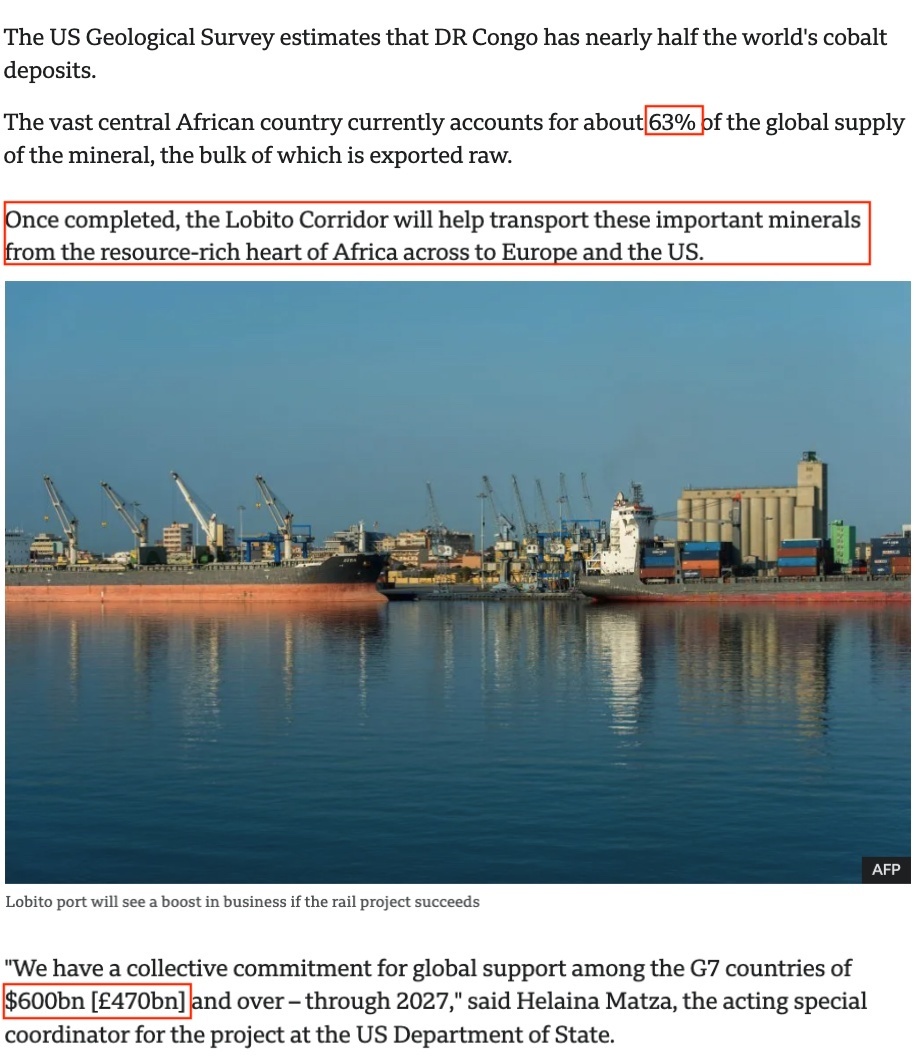 隨著全球關(guān)注的焦點(diǎn)轉(zhuǎn)向綠色能源,中非的礦山正變得越來(lái)越有吸引力。因此,美國(guó)轉(zhuǎn)向投資該地區(qū)的基礎(chǔ)設(shè)施并不令人意外。
