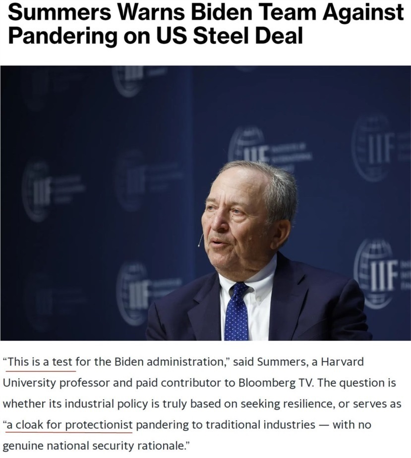 早在去年收購(gòu)案推進(jìn)過程中,美國(guó)前財(cái)政部長(zhǎng)勞倫斯·薩默斯就曾表態(tài)認(rèn)為,日鐵收購(gòu)美鋼并不會(huì)構(gòu)成“國(guó)家安全風(fēng)險(xiǎn)”。