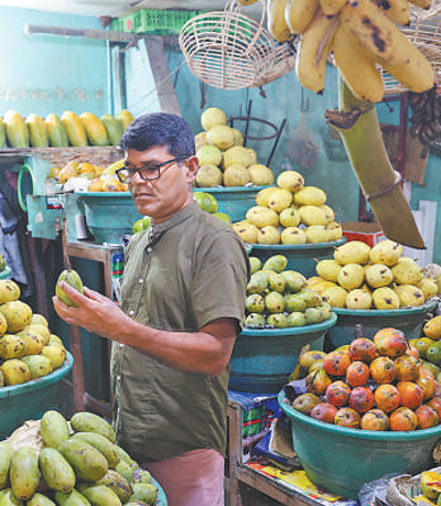 科倫坡市中心水果市場,當?shù)鼐用裾谶x購新鮮水果。