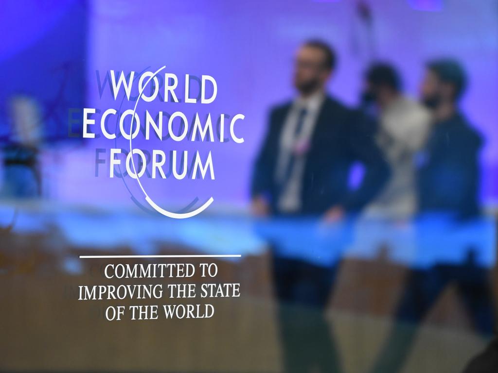 這是1月19日在瑞士達沃斯拍攝的世界經(jīng)濟論壇標識。新華社記者連漪攝