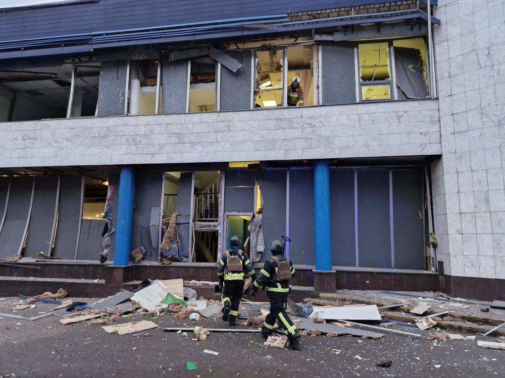 2025年1月18日,在烏克蘭首都基輔市,烏國(guó)家緊急情況局工作人員在空襲受損的建筑內(nèi)搜救。新華社發(fā)(羅曼·佩圖什科夫攝)