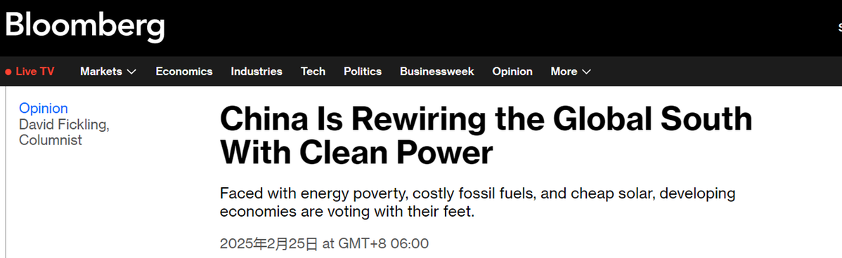 對于資金匱乏的“全球南方”國家而言,這種價格優(yōu)勢改變了游戲規(guī)則。美國彭博社報道指出,能源就是命運。中國太陽能和風能設備方面的大量產能正在“用清潔能源重新連接全球南方”,使孟加拉國和肯尼亞等發(fā)展中國家也能夠用上可再生能源。