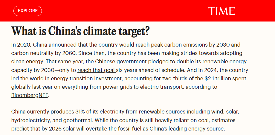 2023年,中國在綠色轉型上的投入超過其他國家的兩倍,成為清潔能源生產的全球領導者。中國還通過低成本綠色技術降低了全球可持續(xù)能源的獲取門檻,例如其太陽能電池板助力津巴布韋農村照明,電動車開始從墨西哥到泰國等地普及。