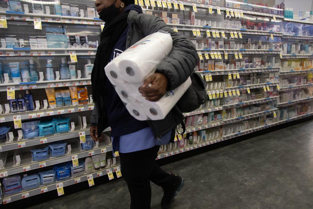 3月28日,顧客在美國紐約市一家藥房購買衛(wèi)生紙。新華社發(fā)(郭克攝)