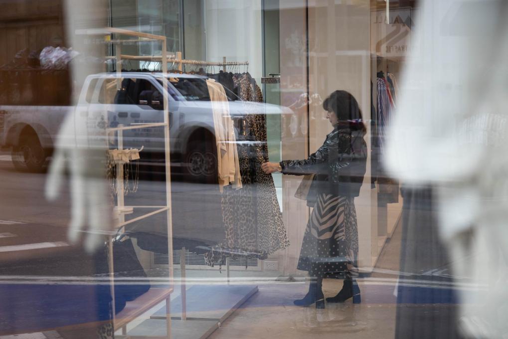 3月28日,顧客在美國紐約市一家服裝店選購服裝。新華社發(fā)(郭克攝)