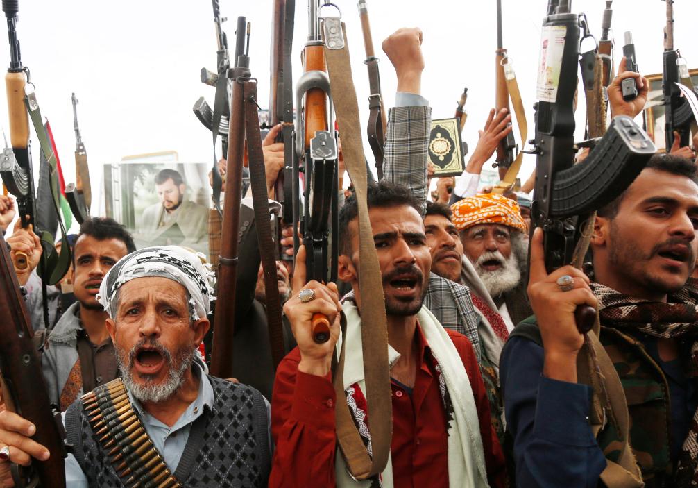 4月11日,數(shù)萬民眾在也門首都薩那參加游行集會(huì),抗議美軍對(duì)也門的空襲。新華社發(fā)(穆罕默德·穆罕默德攝)