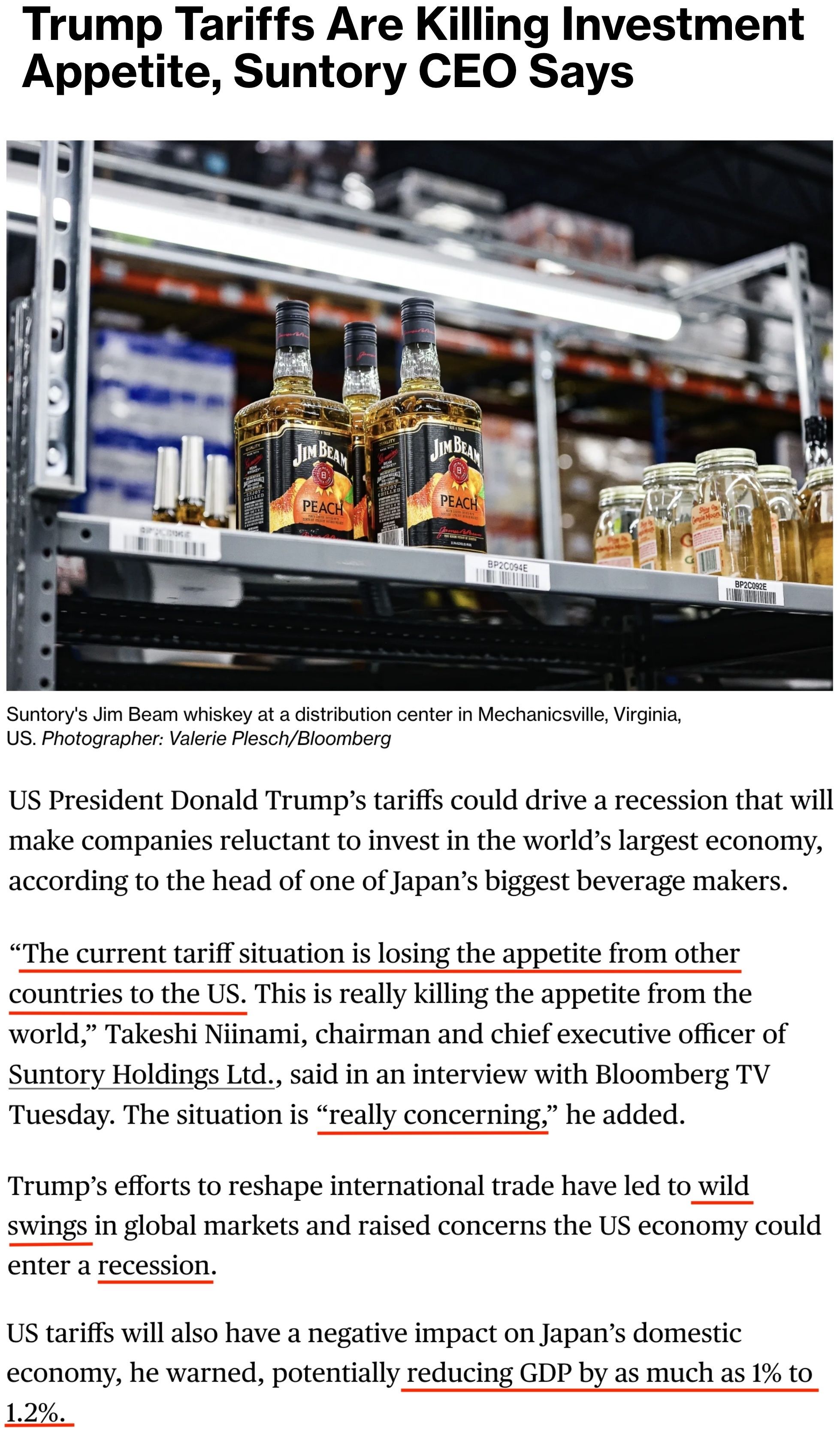 “目前的關稅形勢正讓其他國家失去對美國的(投資)興趣……情況非常令人擔憂。”