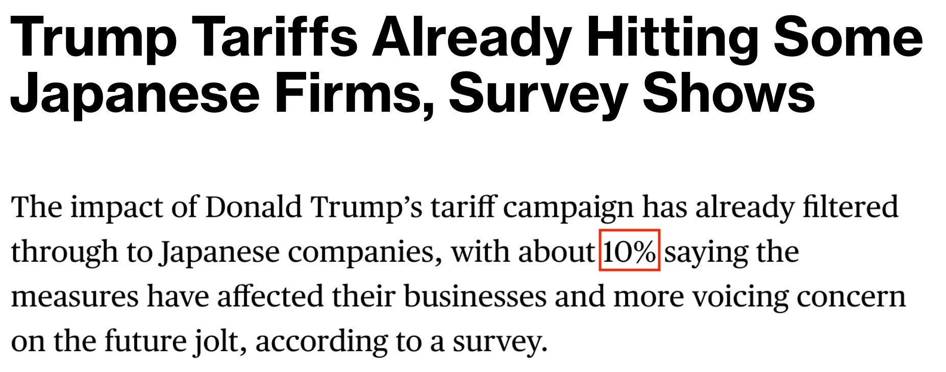 根據(jù)日本財務省22日公布的最新調(diào)查結(jié)果,約10%的日本企業(yè)表示,美國的關稅措施已經(jīng)直接影響到了它們的業(yè)務;更多的企業(yè)則對未來的關稅沖擊感到恐慌。