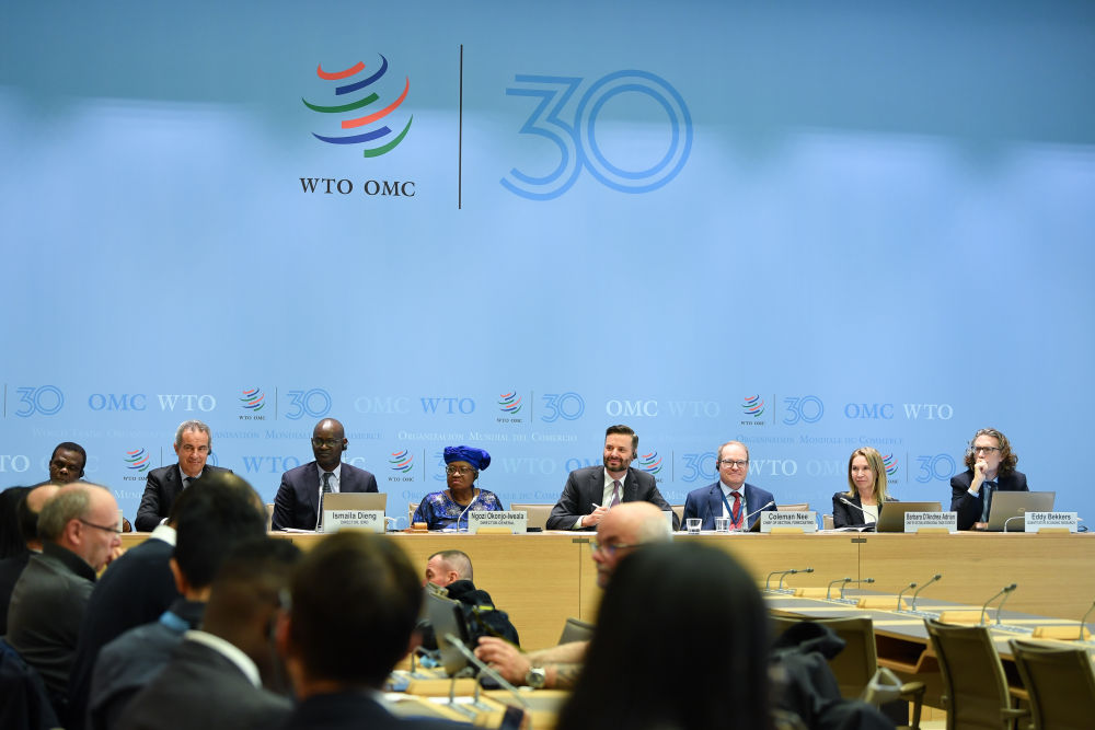 4月16日,在瑞士日內(nèi)瓦世界貿(mào)易組織總部,世貿(mào)組織總干事伊維拉(后排左四)出席新聞發(fā)布會。世界貿(mào)易組織16日發(fā)布的最新報告顯示,美國關(guān)稅政策導致全球貿(mào)易前景嚴重惡化。新華社記者連漪攝