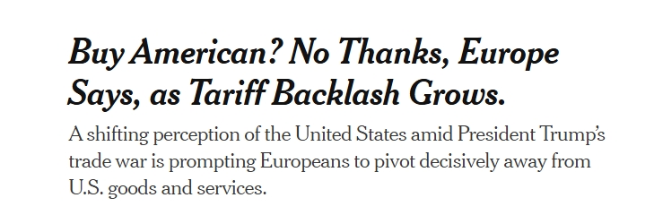 歐洲央行(European Central Bank,ECB)的最新評估顯示,在美國與歐洲貿(mào)易戰(zhàn)的緊張局勢下,許多歐洲消費者開始回避美國產(chǎn)品和服務(wù),“不再購買美國貨”似乎是一次可能長期持續(xù)的決定性轉(zhuǎn)變。