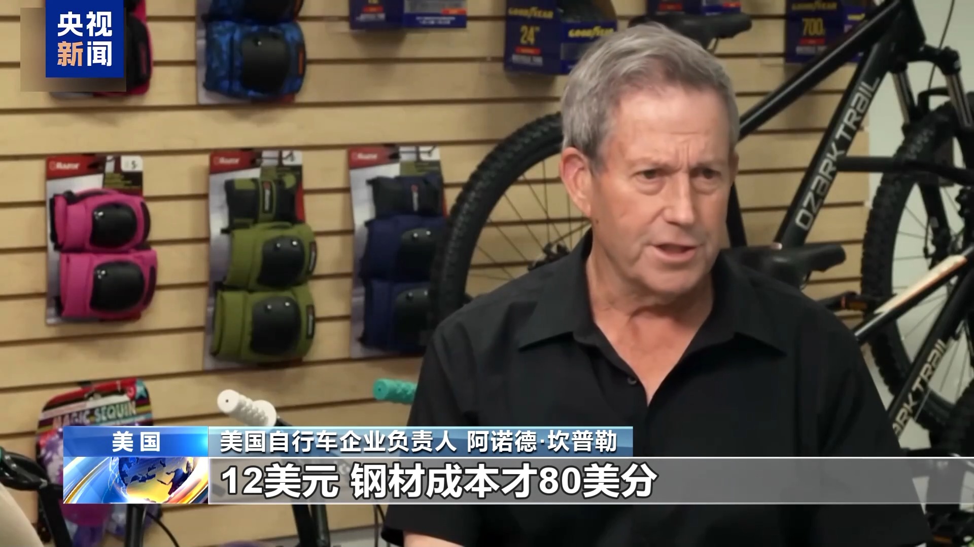 美國自行車企業(yè)負(fù)責(zé)人 阿諾德·坎普勒:像這樣一個輪子,我們原來的成本大約是10到12美元,加關(guān)稅之后,成本得30美元了。