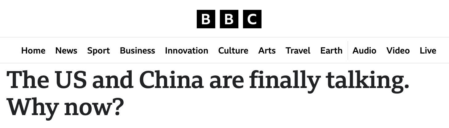 英國廣播公司的報道稱,隨著世界兩大經(jīng)濟體即將在瑞士開始會談,中美貿(mào)易戰(zhàn)可能正在緩和。