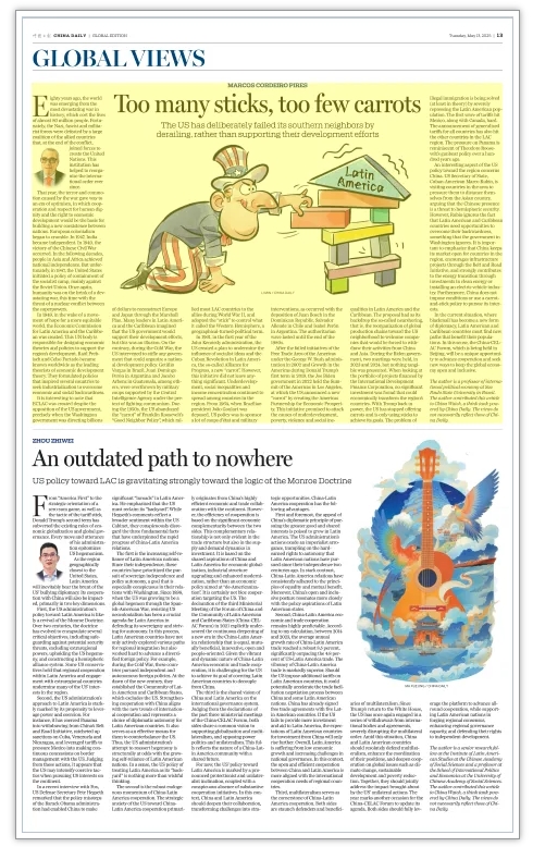 中拉論壇第四屆部長(zhǎng)級(jí)會(huì)議于5月13日在北京開幕。自二戰(zhàn)結(jié)束以來,美國(guó)長(zhǎng)期對(duì)拉美采取“胡蘿卜加大棒”政策,時(shí)而以援助利誘,時(shí)而動(dòng)用武力干預(yù),阻礙了地區(qū)發(fā)展。特朗普再次上臺(tái)后,美國(guó)對(duì)拉美態(tài)度更加強(qiáng)硬,包括關(guān)稅、移民等政策,甚至威脅國(guó)家主權(quán),并施壓地區(qū)國(guó)家遠(yuǎn)離中國(guó)。相比之下,中國(guó)以平等合作方式參與拉美發(fā)展,提供市場(chǎng)、基建和清潔能源投資,且不附加政治條件,開辟了更加務(wù)實(shí)的發(fā)展新路。