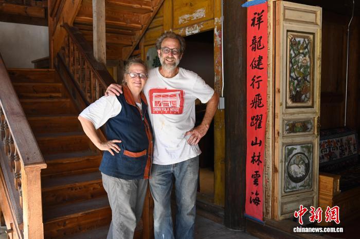 圖為約翰·弗勞爾夫婦在中國民居前合影。中新社記者 陳孟統(tǒng) 攝