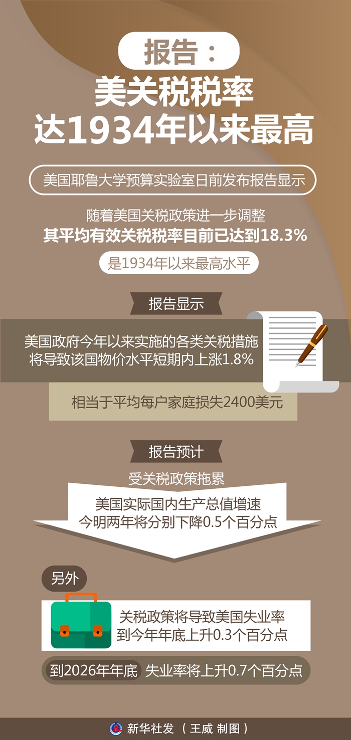 美國(guó)耶魯大學(xué)預(yù)算實(shí)驗(yàn)室日前發(fā)布報(bào)告顯示,隨著美國(guó)關(guān)稅政策進(jìn)一步調(diào)整,其平均有效關(guān)稅稅率目前已達(dá)到18.3%,是1934年以來(lái)最高水平。